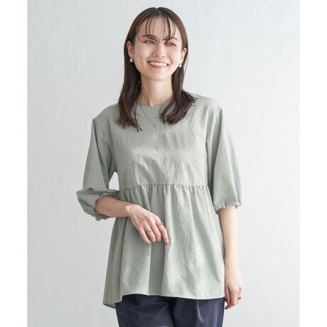 凹凸感のあるさらっとしたサッカー素材を使用し、軽やかな着心地を実現したブラウス。