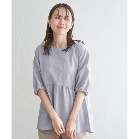 凹凸感のあるさらっとしたサッカー素材を使用し、軽やかな着心地を実現したブラウス。