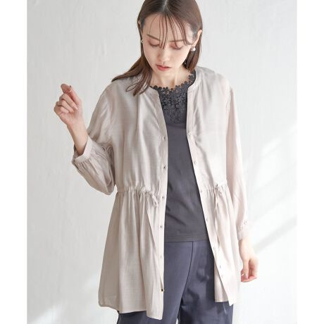 ほんのり透ける軽やかなシアー素材のスキッパーブラウス。