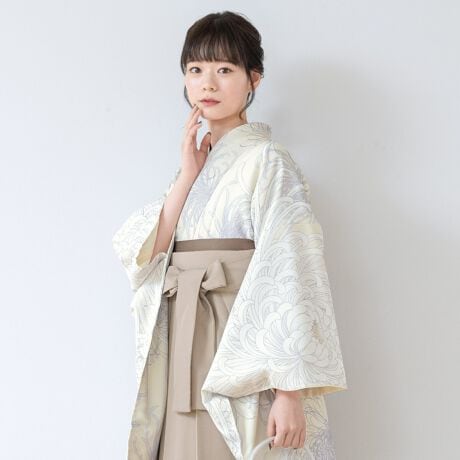 着物は、身丈が短く動きやすい半着タイプです。袴は、合わせやすいシンプルな無地です。