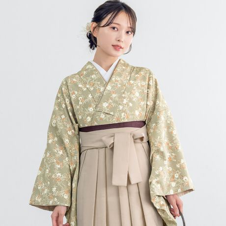 着物は、身丈が短く動きやすい半着タイプです。袴は、合わせやすいシンプルな無地です。