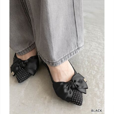 繊細に輝くホットフィックスストーンをあしらったリボンパンプス。