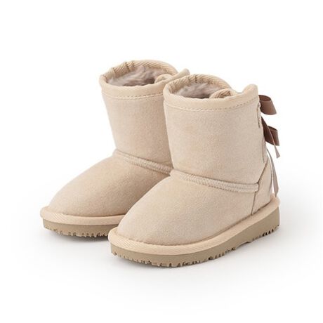 シーズンムードたっぷりなムートン風ブーツです。<br>同系色でまとめた上品なリボンが、バックスタイルも可愛らしく演出。<br>内側の起毛素材が寒い季節も足元をあたたかくしてくれます。<br>ワンピースやスカートはもちろん、細身のデニムにも合わせやすいアイテムです。<br>