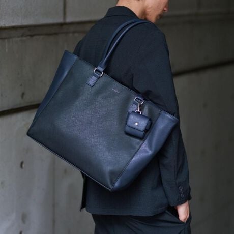 傷に強く、上品な表情が特徴のサフィアーノ仕上げ合皮を使用したトートバッグ。
