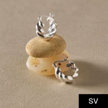 ロープをひねったようなデザインのフープピアス