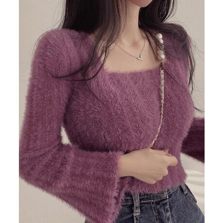 ショート丈 シャギーニットトップス韓国風