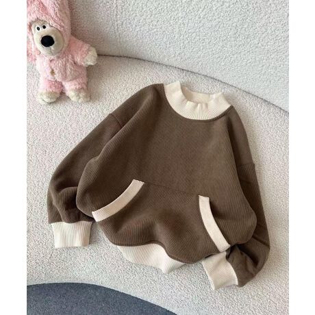 【aimoha-KIDS-】ポケット付き配色スウェット