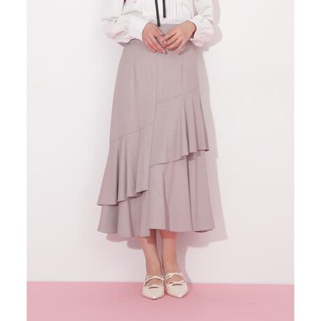 アシンメトリーなデザインと揺れるヘムラインがこなれ感を演出するスカート。裾に向かってボリューム感のあるマーメイドシルエットで、女性らしいフェミニンな装いに。ハイウエストで、ウエストと腰まわりはすっきりとしているので、どんなトップスとも合わせやすいデザインです。後ろはレースダウンでウエストサイズの調節が可能なので、小柄な方やスタイルUPを狙っている方にもぜひオススメです。※撮影時照明の関係により、色味が違って見える場合がございます。またパソコン・スマートフォンなどの環境により、若干製品と画像のカラーが異なる場合もございます。予めご了承ください。商品の色味は、商品単品画像をご参照下さい。※商品画像はサンプルのため、色味やサイズ等の仕様に変更がある場合がございますので、予めご了承ください。