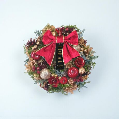 【空間に彩りのアクセントをプラス】まるで本物の植物のような仕上がり。「ナチュラルリース」 Sサイズ。【幸運を祈る、まあるいリース】始まりも終わりもない形は「幸運がいつまでも続くように」という願いが♪【空間がパッと華やぐデザイン】天然素材で作られた植物、本物さながらの木の実をミックス☆自然な風合いを生かしたデザイン。(※)手作り品のため、個体差があります。【場所を選ばない小さめサイズ】可愛らしいSサイズ。スペースの限られた壁やトイレなど、どこにでも飾りやすい大きさ。【水やり不要でお手入れラクラク】面倒なお手入れは必要なし!どなたでも気軽にお花を取り入れられるのが嬉しい♪【サッと壁掛けできて便利】背面の紐を使ってフックなどに掛けるだけ。真っ白な壁が明るい雰囲気にチェンジ。【お祝いのギフトにもおすすめ】中身が見えるクラフトボックス入り。英字新聞風の緩衝材もおしゃれで、贈り物にぴったり。