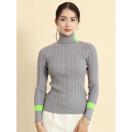 ポイントラインカラーリブタートルニット