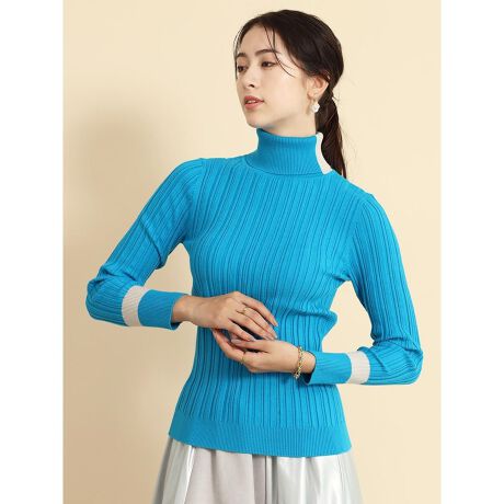 ポイントラインカラーリブタートルニット