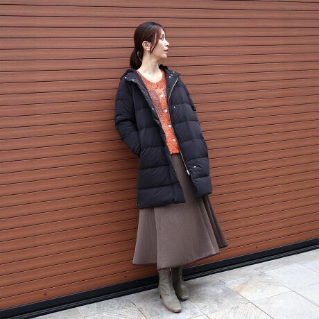 [型番:149101]薄手のダウンコート。大きすぎず、スッキリ感のあるとても着やすいサイズ感です。ストレッチ素材でヒップも隠してくれる安心な丈感です。フードは取り外し可能なのでシーンに合わせてイメージを変えられます。※商品画像は光の当たり具合などにより実際の色味と異なって見える場合があります。