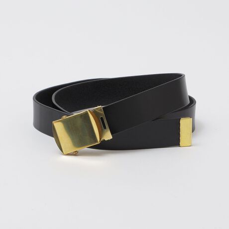 真鍮製の金具とレザーを組み合わせた、大人のカジュアルスタイルに重宝するガチャベルト。
