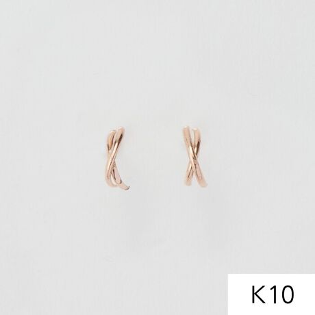 【クロスラインのメタルが煌めくK10ローズゴールド素材のピアス】