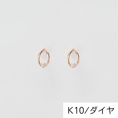 【K10ローズゴールド素材のリーフモチーフにダイヤモンドをセットしたプチピアス】