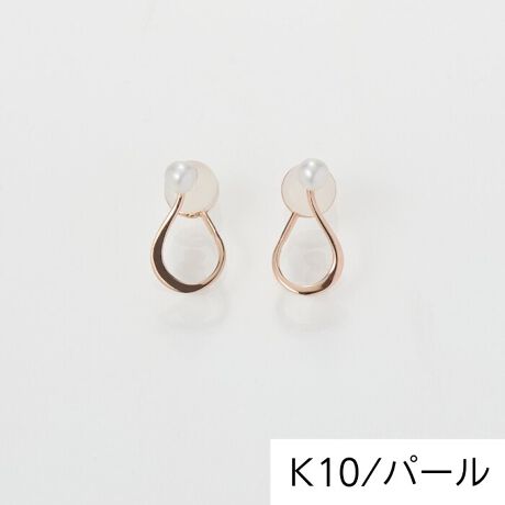 【ひと粒の淡水パールを配した、K10ローズゴールド素材のドロップシルエットイヤリング】