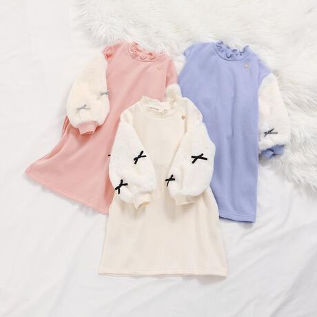 apres les cours(アプレレクール)のワンピース「ファーリボン裏シャギーワンピース」は、アプレこだわりのデザインで1枚でおしゃれコーデが完成する優秀アイテム♪