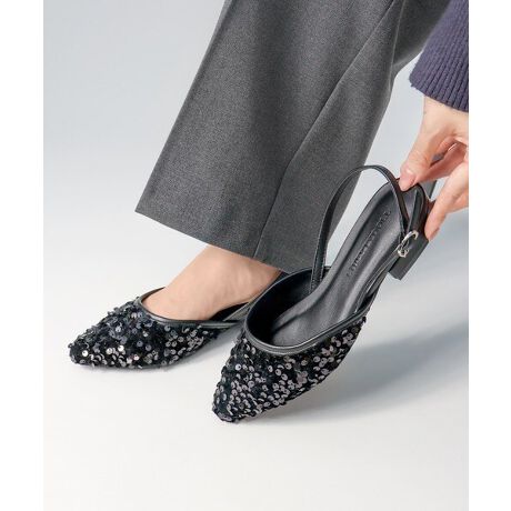 キラキラと光に反射する華やかなスパンコールが目を惹くミュールパンプス!