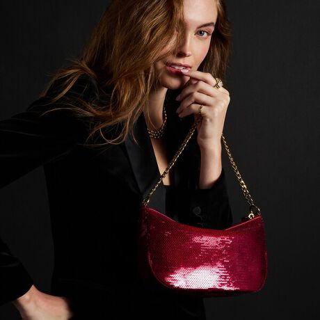 あなたは良い魔女、それとも悪い魔女? あの名作映画の公開85周年を記念して、オズの国をイメージした限定コレクションが登場しました。素敵なルビーレッドのJOLIEバッグは、フラットスパンコールとゴールドトーンのメタルパーツが特徴。短いチェーンショルダーストラップ1本とファスナー付き内ポケット1つを備えています。
