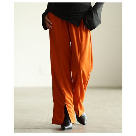 フロントにセンターシームが配されたパンツは、フォーマルライクな雰囲気を醸し出し、きちんと感とスタイリッシュさを演出します。ウエストゴム仕様でストレスフリーな穿き心地に、着脱も楽々。センターシームのラインに、さり気なく裾に配されたスリットが縦ラインを強調し、スタイルアップに仕上げてくれます。足下のスリットで抜け感をプラスし、ロング丈でも重たく感じにくくさせます。伸縮性のある生地でアクティブな動きにもスムーズに対応。ポケット付きで利便性にも長け、シンプルなデザインだから幅広いシーンにもマッチ。ベーシックから彩りある幅広いカラー展開で、シーンやコーデに合わせてシフトしても楽しめます。