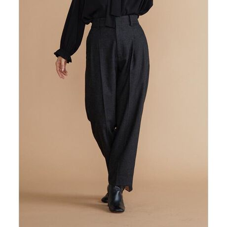 2タックデザインで腰まわりにほど良いゆとりがありながら、裾にかけてややテーパードしたシルエットのタックパンツ。ウエスト部分が見えるようにトップスをインにして、メリハリのある着こなしもおすすめです。ミニマルな印象でどんなスタイリングにも馴染み、オンオフ問わずに幅広いシーンで活躍してくれる万能なアイテム。・裏地あり・フロントファスナーあり・ポケットあり・センタープレスあり・ウエスト後ろゴム仕様同型の大きいサイズ(13号〜)品番:7144161816《Botto Giuseppe/ボットジュゼッペ》イタリア・ビエラ地区にあるボットジュゼッペ社は確固たる地位を築いている高級テキスタイルメーカー。世界各国の著名デザイナー達がその風合いと原料の良さを認め、高級メゾンがボットジュゼッペ社の織物を多用していることにもその信頼が伺えます。
