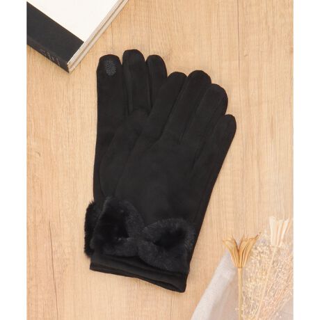 [型番:30378420]手首にふわっとボリューム感のある、リボンデザインのフェイクファーをあしらったグローブ。両手親指部分と人差し指部分はスマホ対応仕様。