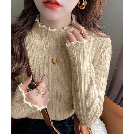 ニットソー 長袖 プチハイネック 韓国風