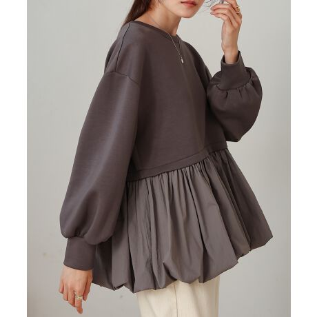 やみつきになる肌触りのポンチトップスに、ボリューミーなバルーンペプラムをドッキングしてアイコニックに仕上げました!丸みを帯びた優しいディティールがフェミニンスタイルをぐっと引き立たせます。ちょうどヒップラインを隠してくれる絶妙な着丈と、自然に体型カバーをしてくれるサイジングで 大人女子の強い味方に。シンプルなカラー展開ながらしっかりとデザインを主張でき、リッチな印象も与えてくれる1枚です。