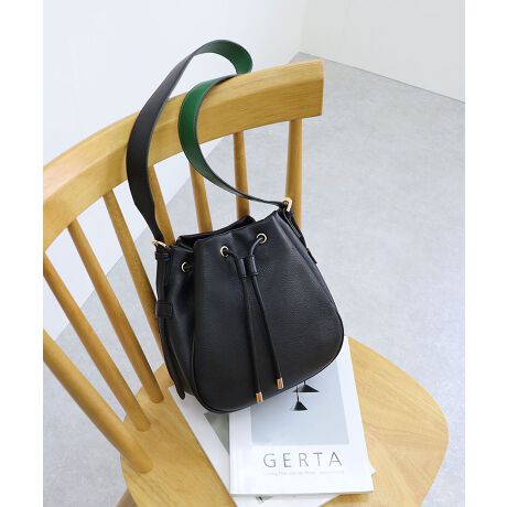ラウンドフォルムで柔らかい印象の巾着ショルダーバッグ