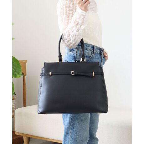【A4/通勤/シーズンレス】ベルトデザイン横型A4トートバッグ