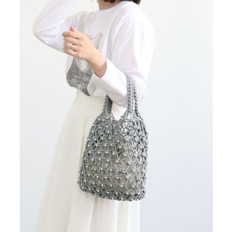 【デイリー/リゾート/軽量】ビーズミックスメッシュトートバッグ