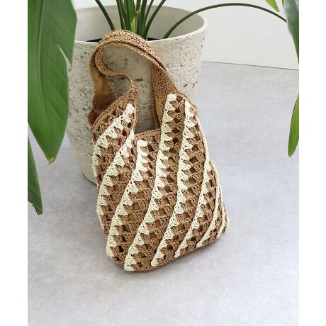 【デイリー/リゾート/かごバッグ】斜め編みトートバッグ