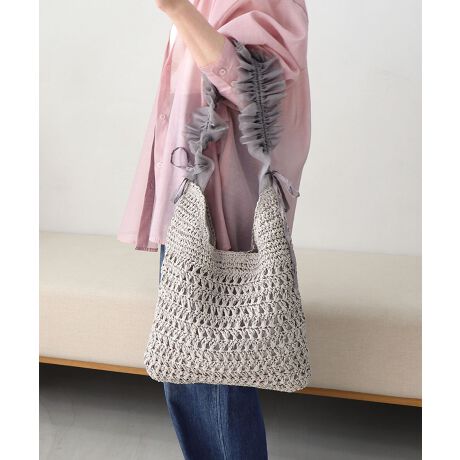 【かごバッグ/リゾート/軽量】ペーパー×チュールフリルワンショルダーバッグ