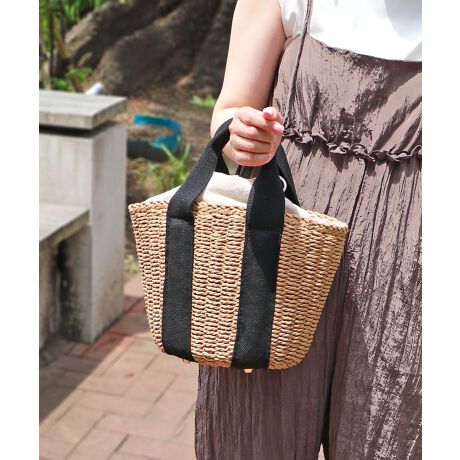 【かごバッグ/リゾート/軽量】口元巾着ハンドルテープペーパートートバッグ