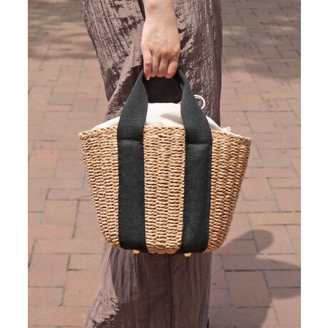 【かごバッグ/リゾート/軽量】口元巾着ハンドルテープペーパートートバッグ