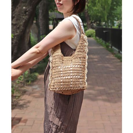 【デイリー/カゴバッグ/ミディアムサイズ】配色スカラップ 2wayトートバッグ
