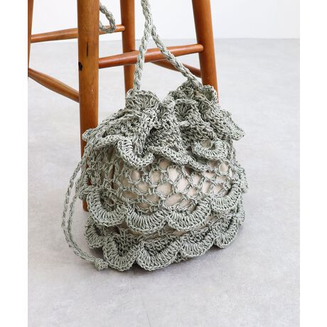 ティアードスカラップが目を惹く巾着ショルダーバッグ