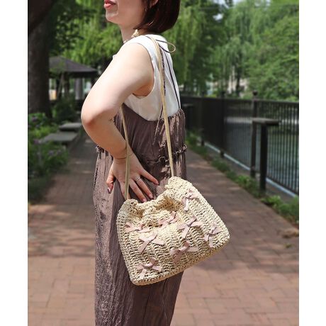 【カゴバッグ/デイリー/軽量】ミニリボンハンドバッグ