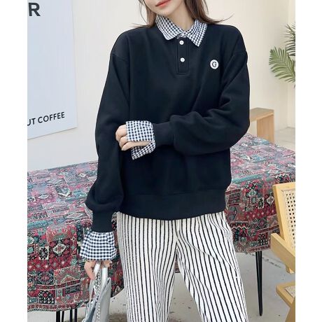 フェイクレイヤード裏起毛ポロスウェット