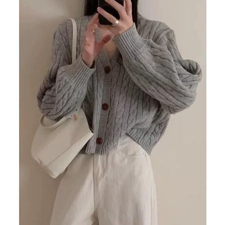 ケーブル編みVネックカーディガン