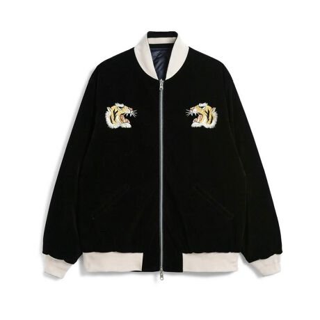 表側はベロア生地にスカジャンタイプの刺繍を配し、