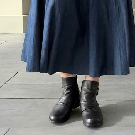 まず手に取って驚いたのが、本当に超軽量で、履いていることを忘れるほど足運びがスムーズな点です。着脱のしやすさも抜群で、斜めに走るサイドファスナーが大きく開くため、忙しい朝でもサッと履けます。デザインは、アッパーのくしゅくしゅとしたギャザーが女性らしく柔らかい印象で、カジュアルすぎず、スカートにもパンツにも合わせやすい万能さがあります。さらに、程よい厚みのソールが地面からの衝撃を吸収し、さりげなくスタイルアップも叶えてくれるため、毎日履きたくなるコンフォートな一足です。
