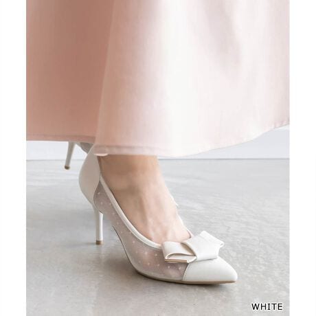 ドットのチュール素材やピンヒールなど、レディムード漂うディティールを詰め込んだ1足です。