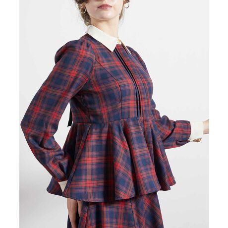 今季注目のチェック柄と、たっぷり揺れるペプラムシルエットがレディな印象のシャツ。