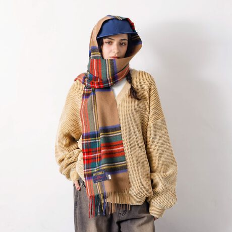 【TWEED MILL/ツイードミル】ラムウールチェック柄ストール/ユニセックス