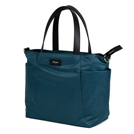 ソフトで軽いのにエレガントな撥水ナイロン・スクエアミニトートです。直線的なデザインで、ON/OFF幅広いシーンで使えるようにイメージしました。外出に必要な必需品が入る程よいミニサイズのトートバッグです。ほぼ正方形に近いスクエア型で、長財布・スマホ・ポーチ・A5サイズダイアリー・500mlボトルが立てて収まるサイズ感です。本体にはエレガントな光沢が美しいテフロン加工ナイロンを使用。とても軽く、また急な雨などが降っても水滴が浸みこまず表面で止まってくれるので、さっとひと拭きで元どおりお使いいただけます。ハンドル部分には撥水レザーを使用。革使いがさらに高級感を引き立てます。本体口はファスナーマチがついており、安心してお使いいただけます。インナー背面側には財布などが収まるファスナーポケット付きです。インナー前側にはキーケースやカードケースが入る小分けポケットが2つ付いています。本体両サイドにはポケットがついており、すぐに取り出したいパスケースやスマホなどを入れておくのに便利です。