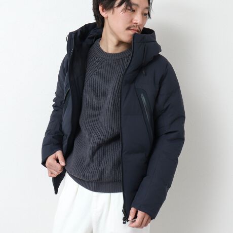 ちるといったダウンジャケットの課題にアプローチし、「防水性」と「耐水性」という新しい価値を備えた高機能ダウンジャケット。裁断、ダウンパックの形成、熱圧着加工、ダウン詰めまで、すべての工程において経験豊富な職人の手によって一つ一つ形作られる。
