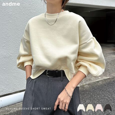 裏起毛 ショート丈 ボリューム スウェット トップス