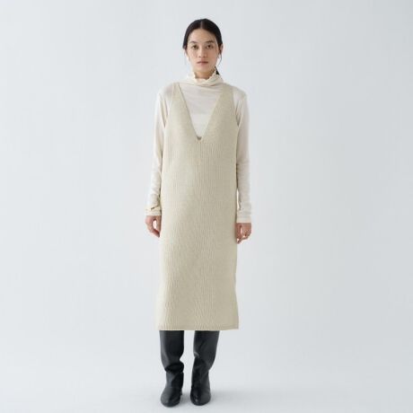 ・ラメを編み込んだキラキラ感が華やかなワンピース。
