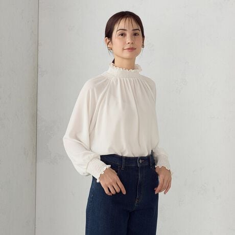 レトロフェミニンなシャーリングブラウスです。